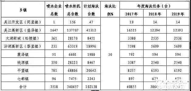 2017年6月,吳江區制定了《吳江區“三水同治”噴水織機專項整治實施方案》,明確了淘汰40855臺噴水織機和完成20%織機中水回用的年度任務。各區鎮也根據整治要求制定了相應的噴水織機整治行動方案,出臺各自織機總量控制和獎勵補償方案,將整治任務分解到區鎮的各部門。