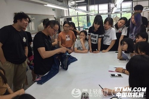 圖說(shuō):中國(guó)牛仔創(chuàng)意設(shè)計(jì)大賽組委會(huì)秘書長(zhǎng)張志軍講解作品制作。
