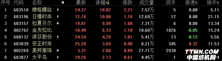 服裝家紡板塊漲幅靠前