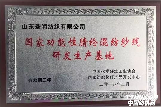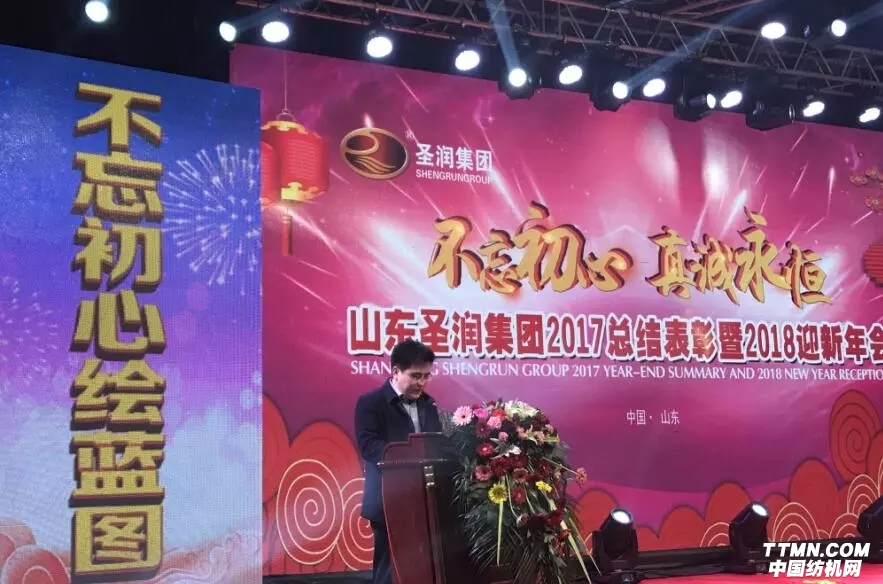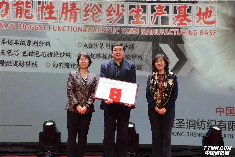 2018年2月5日,山東圣潤紡織有限公司2018迎新年會暨中國化學纖維工業協會、國家紡織化纖產品開發中心與山東圣潤紡織有限公司合作共建“國家功能性腈綸混紡紗線研發生產基地”授牌儀式在山東嘉祥隆重舉行。