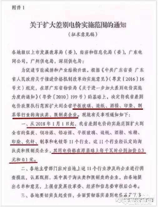上個(gè)月,為促進(jìn)節(jié)能減排和產(chǎn)業(yè)結(jié)構(gòu)升級(jí),廣東省發(fā)改委決定在原廣東省物價(jià)局《關(guān)于進(jìn)一步加大差別電價(jià)實(shí)施力度的通知》的基礎(chǔ)上,將全省差別電價(jià)政策執(zhí)行范圍擴(kuò)大到全省化纖、印染、制革等11個(gè)行業(yè)。