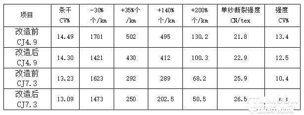 我們對針織紗CJ4.9tex、CJ7.3tex進行了成紗指標對比試驗