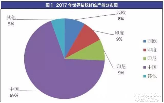 1.1 產(chǎn)能產(chǎn)量穩(wěn)居世界第一:2017年世界粘膠短纖產(chǎn)能588萬噸,其中中國產(chǎn)能405萬噸,占世界產(chǎn)能的69%。西歐產(chǎn)能主要來自于奧地利蘭精公司,印度產(chǎn)能主要來自于博拉公司,其他地區(qū)有泰國、印尼等。