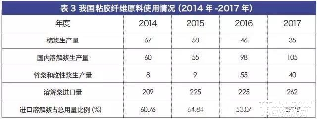 但是在2017年7月后,我國造紙漿價格開始飛漲,至第四季度后,改性漿基本由于沒有合適價格的原料而多數(shù)停車;而棉漿則在2017年由于環(huán)保繼續(xù)從嚴(yán)檢查,產(chǎn)量也出現(xiàn)了下滑。由于這兩種原料在生產(chǎn)上受制于環(huán)保以及原料價格的起伏限制,預(yù)計在未來5年內(nèi),這兩種的產(chǎn)量將開始逐步降低。故后期隨著我國粘膠短纖的擴產(chǎn)項目再投產(chǎn),我國的粘膠纖維原料仍會保持60%以上的進(jìn)口率。生產(chǎn)原料靠進(jìn)口為主,需要提防當(dāng)年“鐵礦石之戰(zhàn)”在粘膠纖維領(lǐng)域中上演。
