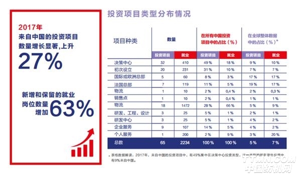 具體而言,2017年,海外投資者在法國達成了1298項投資決策,共計新增和保留了33489個就業(yè)崗位,即平均每周就有25項海外投資決策在法國達成,投資決策數量上升16%,其中來自中國的投資增長顯著,并為法國帶來了2234個就業(yè)崗位,增長63%。