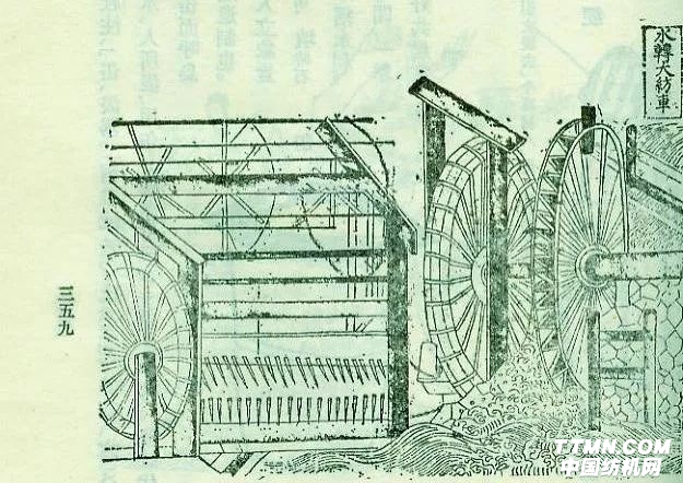 但是出乎一般人意料之外的是,水力紡紗機的發明與最早使用并不是在18世紀中期的英國,而是在此前四個世紀的元代中國。在王禎《農書》中有翔實的紀載。王禎把這種水力紡紗機稱為“水轉大紡車”,詳細地介紹了其結構、性能以及當時的使用情況,并且附上了這種機器的簡要圖樣,從而以確鑿不移的證據,證實了世界上最早的水力紡紗機的存在。