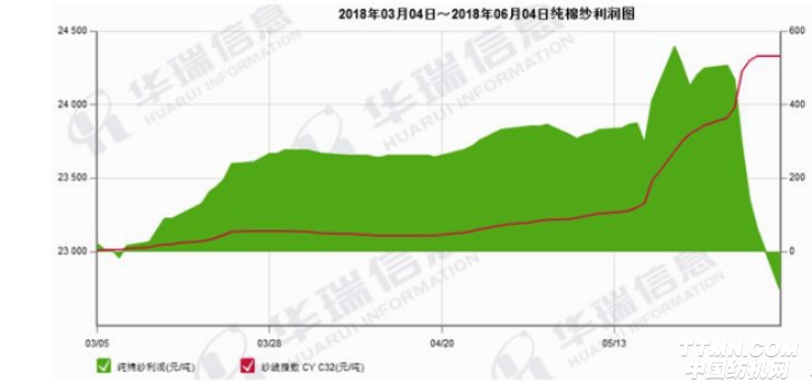 從我們模擬的棉紗利潤(rùn)圖可以看出,3月份以來(lái)紡紗利潤(rùn)逐步回升,棉花價(jià)格越低利潤(rùn)越高,正是棉紗的需求旺盛帶動(dòng)了棉花的需求,即使棉花在3-5月份之間還仍在不斷摸底階段。隨后棉花價(jià)格大漲,棉紗價(jià)格也隨著不斷上調(diào),但在最近一周中,棉紗價(jià)格滯漲,下游需求明顯減弱,加上棉花價(jià)格仍在快速上漲,棉紡廠(chǎng)的利潤(rùn)首次出現(xiàn)虧損,反應(yīng)出下游承接能力不強(qiáng),緊接著就是棉花價(jià)格出現(xiàn)大跌行情。如果以棉紡廠(chǎng)模擬利潤(rùn)來(lái)預(yù)測(cè)棉花漲跌趨勢(shì),那么棉價(jià)應(yīng)該在5月底就因該調(diào)整。
