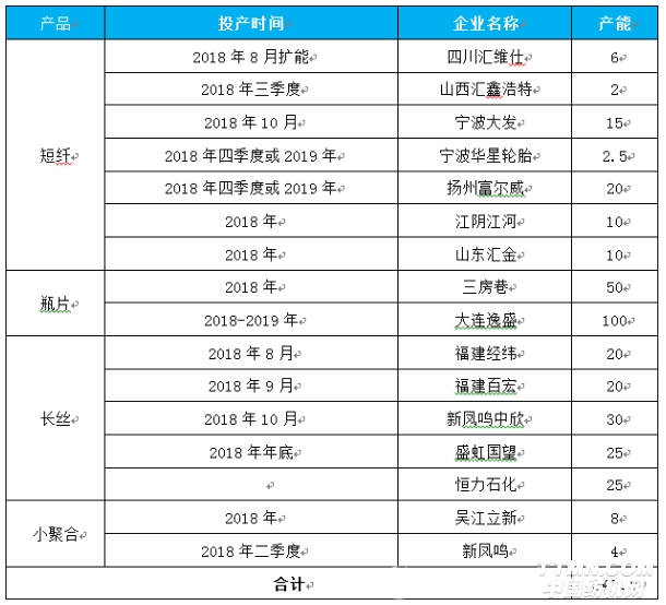 表2 2018聚酯下半年預計投產情況一覽