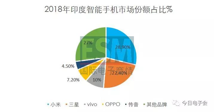 2018年,全球智能手機(jī)市場(chǎng)持續(xù)疲軟,印度智能手機(jī)市場(chǎng)卻逆勢(shì)增長(zhǎng)。根據(jù)Counterpoint的數(shù)據(jù),2018年印度智能手機(jī)出貨量約為1.452億部,同比增長(zhǎng)10%。同時(shí),印度政府在近年來(lái)頻繁提升手機(jī)相關(guān)的進(jìn)口關(guān)稅,迫使外資企業(yè)在印度建廠。