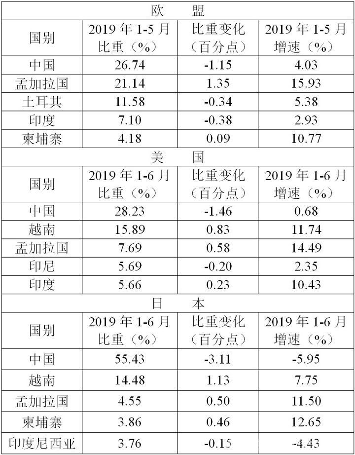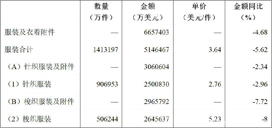 2019年1-6月服裝出口概況