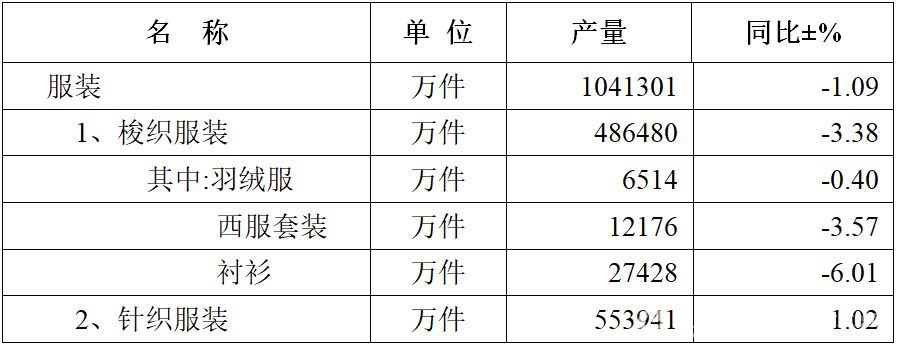 (一)服裝生產(chǎn)基本平穩(wěn)