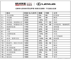 10月10日,胡潤研究院發布了《2019胡潤百富榜》,榜單顯示,1819位企業家財富超過20億,比去年1893人減少4%(74人)。其中,19人財富上千億,比去年驟增7人,為歷年最多。