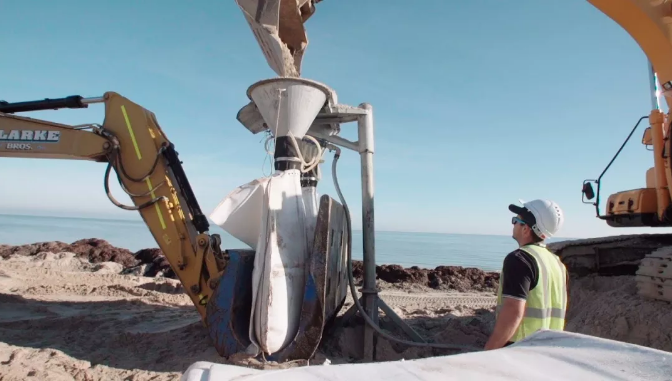 土工織物在海事工程中的作用主要是保護陸地、人造結構免受海水沖擊并保持其結構穩(wěn)定,目前主要有兩種應用形式:一種是單獨作為過濾或提高結構穩(wěn)定性的材料使用;另一種是作為填充外殼,內部填充沙土等用作抗侵蝕和結構穩(wěn)定材料。