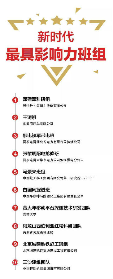 10個“新時代最具影響力班組”