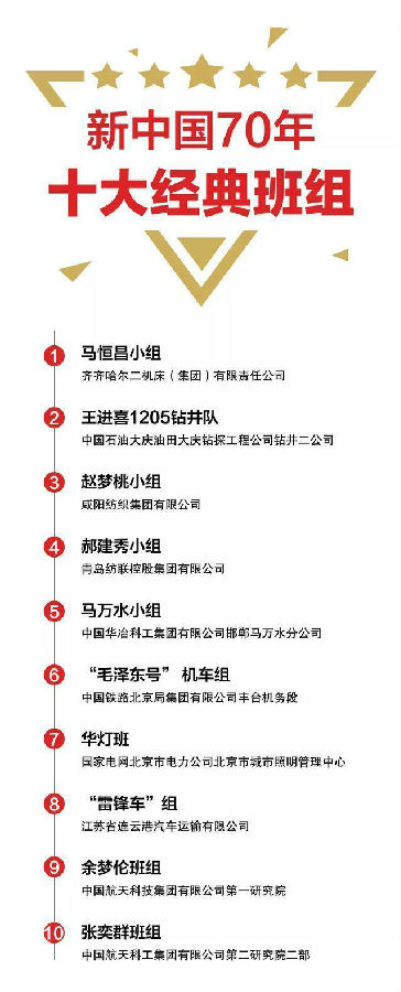 “新中國70年十大經典班組”