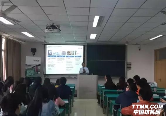 講座在立達的公司介紹中拉開了帷幕,除了立達集團介紹,立達產品部沈經理還與大家分享了目前全球紗線市場的現狀。立達200多年來持續專注于紡紗行業的精神給同學們留下了深刻的印象。全球紗線市場的分布情況也讓同學們認識到了中國在全球紡紗市場舉足輕重的地位。