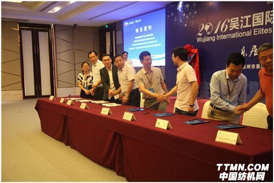 7月11日上午,2016吳江國際精英創新創業洽談會在吳江賓館隆重開幕,來自15個國家和地區的100多位精英人才齊聚吳江,與本土企業開展合作洽談,進行人才、項目、載體、資金、信息等創新創業要素的多元對接。在企業與人才對接環節,新申集團與孫林簽訂2017春夏中國(北京)國際時裝周亞麻流行趨勢發布項目,展現中國亞麻面料時尚精粹。