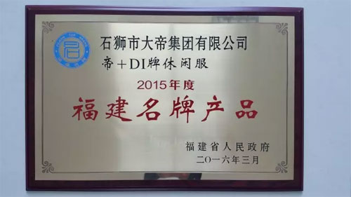 根據福建名牌產品評價程序,經省名牌產品評定工作委員會評審,省政府日前批準授予552項產品“2015年度福建名牌產品”稱號,其中我司共有2項產品榜上有名:帝牌T恤衫、帝牌休閑服。