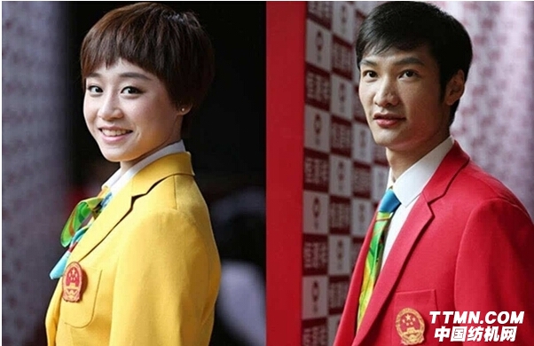 里約奧運會中國代表團的奧運禮服分男女兩款,男款是紅色外套、白色襯衫配花領帶、白色西褲、白色鞋子,女款是黃色外套、白色襯衫配花絲巾、白色裙子、白色鞋子。