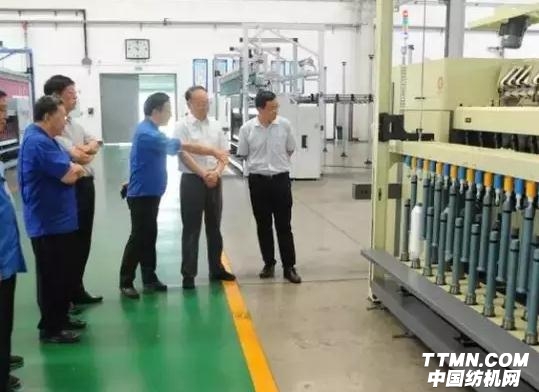 在庫冠群等領導的陪同下,高勇一行參觀了數控一廠、數控二廠、冷作廠、總裝廠和機電設備廠五個生產單位,重點察看了國內第一臺192錠JWF1458型外置式自動落紗粗紗機和由天津工業大學統一進行工業化外觀造型設計的準備參加上海紡機展的展機。