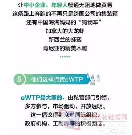 G20杭州峰會公報的英文版本中,同時給出了Electronic World Trade Platform的英文縮寫eWTP。民間倡議寫入二十國集團領導人會議的正式公報,足見此次峰會對eWTP的重視。
