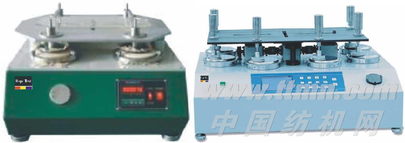 Martindale耐磨性及起球性測試儀,可檢測各種結(jié)構(gòu)織物的耐磨性及起球性能。試樣與一定的磨擦材料進(jìn)行低壓持續(xù)換向磨擦,其磨損及起球程度可與標(biāo)準(zhǔn)參數(shù)進(jìn)行對比評價。本儀器采用活動式的試樣緊固組件,可隨時取出某個磨擦試樣而不影響其它試樣,不僅實現(xiàn)了對試樣迅速、獨(dú)立的檢測,還保證了對磨擦同期計量的準(zhǔn)確性,是BSEN ISO12947-1:1999被認(rèn)可的緊固方法。本儀器配有電子預(yù)置批處理計時器及總合計數(shù)器、試樣夾及負(fù)荷裝置(符合國際測試標(biāo)準(zhǔn))可提供4、6頭的型號。 標(biāo)準(zhǔn): ISO 5470 ,DIN 53863/53865,BS 3424/5690,IWTO 40-88,BS EN 388/530,IWSTM 112/196,ASTM 4966/4970 IS 12673,JIS L1096,SFS 4328,PR EN ISO 12947-1,PR EN ISO 12945-2,SATRA TM31,ISO 20344 技術(shù)指標(biāo): 試驗次數(shù) 1~999999 累加計數(shù) 1~999999 測試頭數(shù) 4、6、8 磨塊有效摩擦直徑 φ28.8mm 夾持器與磨臺相對運(yùn)動速度 50r/min 衣料試樣重錘 395g 裝飾品試樣重錘 594g 電 源 AC220V, 250W 附件: 起球性測試附件: KHF-BP016E SDC磨擦織物,精選磨擦織物SM25,寬1.6米×長5米。 KHF-BP016F 氈片碟(機(jī)織物),直徑140mm標(biāo)準(zhǔn)襯氈碟(機(jī)織)140mm直徑(20片/包),BS5690/1991+PR,EN,ISO 12947-1750±50gm/m²×約厚2.5mm。 KHF-BP016G SM50圖卡,起球性測試IWS+ASTM,4套1-5(平紋,斜紋A,斜紋B,毛毯)。 選購件: KHF-BP016H EMPA圖卡標(biāo)準(zhǔn),起球性測試(3×4針織)。 KHF-BP016J EMPA圖卡標(biāo)準(zhǔn),起球性測試(3×4機(jī)織)。 KHF-BP016K 標(biāo)準(zhǔn)磨擦片,F(xiàn)2(230mm×280mm),用于防護(hù)手套耐磨性測試(50片/包)。 KHF-BP016L 碳化硅織物片(P180G),230×280mm,用于涂層織物耐磨性能的測試(25片/包)。 -- 耐磨試驗 圓形織物試樣靠在標(biāo)準(zhǔn)摩擦布上進(jìn)行摩擦測試,耐磨性能取決于試樣分解時的摩擦次數(shù)或試樣重量消耗,測試試樣摩擦布上的擺動軌跡被稱為Lissajous圖形。 -- 起毛球試驗 在馬丁-戴爾試驗機(jī)上采用的起毛球測試方法配合EMPA發(fā)展而來。測試適于針織和機(jī)織織物(由短纖沙織成)。用語言描繪的標(biāo)準(zhǔn)配合EMPA圖片標(biāo)準(zhǔn)來評價起毛球的程度。 -- 運(yùn)作和震幅 對于某些工作來說,須依據(jù)Lissajous圖形來做出一個有規(guī)律交互性的動作測試。由耐磨測試轉(zhuǎn)為起毛球測試時,需要改變震幅的長度。改變運(yùn)作的方式和震幅非常簡單,只要移動驅(qū)動組件的位置,無需借助其他工具和零配件。