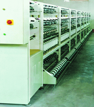包覆紗機用錠子,能對復雜紗線加工特殊產品。例如金銀線;安綸;及各式各樣紗線捻合成特殊紗線。