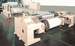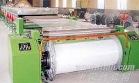 將4個從整經機上卷繞成的經軸,固定排列于經軸架上,由經軸架的電機主動傳動經軸旋轉,并由車頭電機在保持均勻的速度,保持有一定張力卷繞成經軸,供織機使用。 -------------------------------------------------------------------------------- 主要技術參數: 1、 織軸盤片直徑 ø550-ø1016mm 2、 經軸盤片直徑 ø550-ø1016mm 3、 織軸有效幅寬 900mm ~1700mm(可定制) 4、 經軸有效幅寬 1378mm(可定制) 5、 并軸速度 5~120m/min 6、 經軸數量 4(可定制) 7、 退卷張力范圍 50~500N 8、 收卷張力范圍 600~6000N 主要技術特征: ● 采用日本三菱PLC進行安全可靠的自動控制 ● 由變頻電機、電-氣比例閥及直線位移傳感器閉環控制紗線卷取及退卷張力 ● 測力輥與直線位移傳感器相連,用于檢測紗線的張力,并反饋給矢量變頻控制器,來控電機的速度,達到自 動控制張力,使張力保持在設定值 ● 6"液晶觸摸屏設定并顯示各種技術參數,操作方便,信息量大 ● 上、下壓力輥分別與兩只氣缸相連,用于壓緊紗線,增大牽引輥的包角,使紗線與牽引輥之間無滑移 ● 牽引電機及退繞電機均裝有制動器,可使旋轉的經軸迅速制停 ● 在導紗輥的一側裝有旋轉編碼器,用以測量經紗的長度 ● 經軸的退繞由變頻電機通過減速器來實現 ● 升落軸裝置 氣缸拉動托臂式 ● 配有安全桿和紅外光柵實現對操作者的安全保護