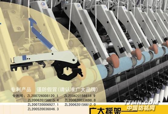搖架是紡紗牽伸裝置的重要部件,此次紡機展上張家港廣大紡織機械有限公司推出的新一代可調式氣動搖架,因其眾多的優勢和自主創新而受到業界的極大關注,大有不鳴則已,一鳴驚人的氣勢。