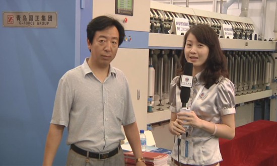 (圖為中國紡機網記者現場采訪青島國正機械有限公司副總經理王文志)