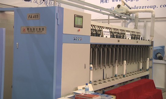 在2011上海紡機展上,青島國正機械有限公司副總經理王文志為我們介紹了公司此次參展的概況:“這次十五屆紡展公司主要展的兩個機型,一個是四軸無差速的,四軸連動,再一個就是三軸的,也是無差速現在我們公司的無差速目前是國內國際上是最先進的設備,那么這個設備一跑高速,二可以說紡紗挑桿都能提高是國內軌跡最先進的,那么這三臺的三軸車呢,取得了國內獨有的專利,也是未來跑高速,也是為了提高質量,所以說這是我們公司獨有的產品,這是我們的專利號,目前國內所有紡織公司做粗紗的,我們無差速是最大亮點,還有一個第二個是我們本廠的一個專利,。那么現在紡紗要求提桿要求提高質量提高價,那么這一款可以緩解紗的質量。