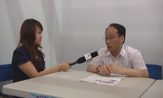 (圖為中國紡機網記者現場采訪上海一紡機械的賀總)