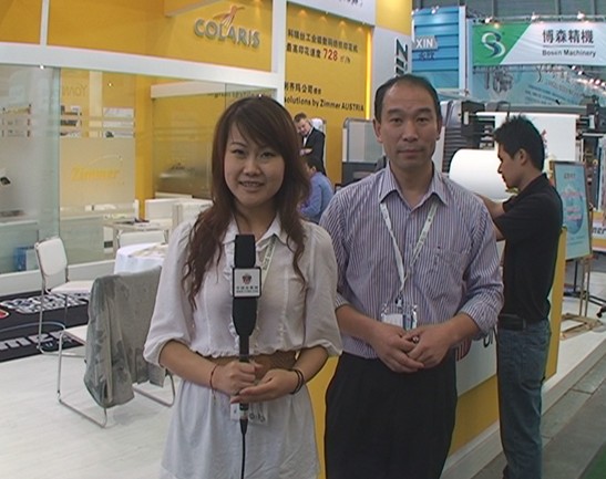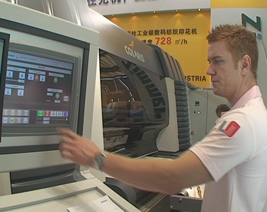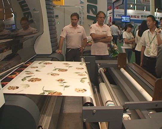 在2011上海紡機(jī)展上,摯陽(yáng)國(guó)際的朱先生為我們介紹了此次參展的相關(guān)情況:“我們摯陽(yáng)國(guó)際是一家剛剛成立的新公司,在富陽(yáng)聯(lián)合旗下的一個(gè)專門做貿(mào)易的一個(gè)公司,然后我們的定位是引進(jìn)先進(jìn)的數(shù)碼印花的產(chǎn)品到國(guó)內(nèi)來(lái),來(lái)提高整個(gè)中國(guó)行業(yè)的水平,從國(guó)內(nèi)傳統(tǒng)的平網(wǎng)、圓網(wǎng)的印刷能夠逐步過(guò)度到部分比如數(shù)碼印花來(lái)代替,這是我們的一個(gè)發(fā)展方向,所以說(shuō)我們是把世界上相對(duì)來(lái)說(shuō)一流的產(chǎn)品帶到中國(guó)來(lái),介紹給中國(guó)的廠家。在此次上海紡機(jī)展上,我們主要帶來(lái)3款產(chǎn)品,那現(xiàn)在我就是帶領(lǐng)大家看一下我們現(xiàn)在目前主要的三款產(chǎn)品,首先我們這個(gè)第一款產(chǎn)品是韓國(guó)公司的,它在這個(gè)數(shù)碼印花領(lǐng)域是比較一個(gè)先進(jìn)者,然后我們代理了它有兩款。第一款的中文名叫特里