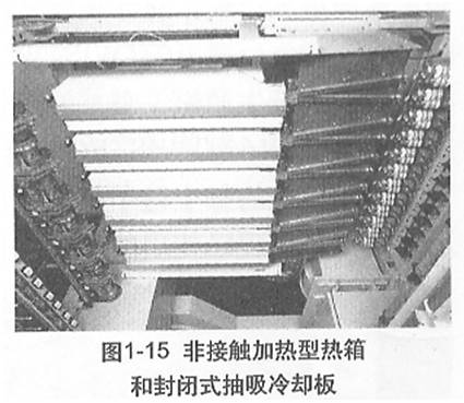 根據(jù)不同的加工用途,ATF—2l型高速拉伸變形機(jī)可選擇M形、V形或T形絲道的配置。特別是T形絲道的配置具有短而直的絲條通道,有利于高速高質(zhì)量的加工。現(xiàn)將三種絲道的第一熱箱、冷卻板比較如下,見表1—33。T形絲道的非接觸加熱型熱箱和封閉式抽吸冷卻板見圖1-15。