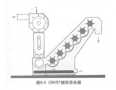 ·OM/87梯形除雜器(圖6-4)??? 適用于任何種類纖維的除雜,可排除任何雜質(植物類雜質,屬,塑料,動物類雜質等),特別適用于紡織品廢料加工。該機由三部分組成: