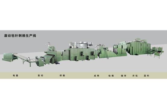 粗開松 → 精開松 → 存棉箱 → 給棉箱 → 梳理機 → 混棉機 → 針刺設備→ 卷繞機