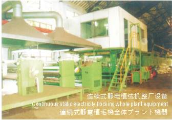 該生產線包括絨毛制作、連續植絨以及后道壓花、磨花維、棉纖維等。可植絨毛有尼龍纖維、粘膠纖維、棉纖維等。?