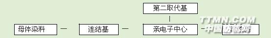 眾所周知活性染料是由母體染料、連結(jié)基和活性基三部份組成,其中活性基部份又由親電子中心,活性基和第二取代基組成,活性染料的組成圖示如下: