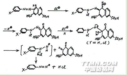 偶氮型母體染料受活性氯作用的分解反應(yīng)式