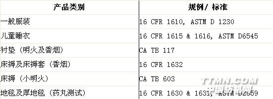 CFR1610 CRR 1610 CFR1615 CFR 1615 CFR1616 CFR 1616美國聯(lián)邦政府(透過美國消費產(chǎn)品安全議會[CPSC])及加州州政府對現(xiàn)時襯墊家具、床褥及床具訂立新的要求。此外,對于聯(lián)邦一般服裝標(biāo)準(zhǔn)亦提議作出修訂。
