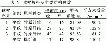 1 織物試樣規格 各試樣的規格及主要結構參數見表1。