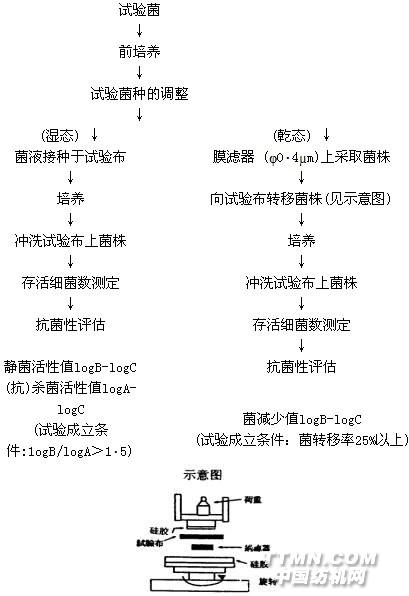 一、茵轉(zhuǎn)移法: 該提案試驗抗菌性有二種方法;一是傳統(tǒng)的濕潤狀態(tài)的菌液吸收法,二是新增的乾態(tài) 菌轉(zhuǎn)移法。兩者的概要如下表: