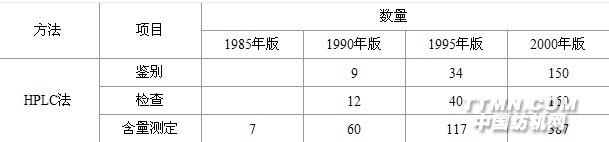高效液相色譜我國藥典收載高效液相色譜法項目和數量比較表: