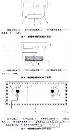 (圖1)、屏蔽室法(圖2)、波導(dǎo)管測試法(圖3)、微波暗箱測試法(圖4)、微波暗室測試法(圖5)等。