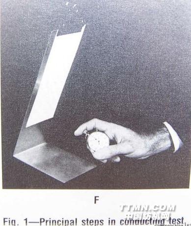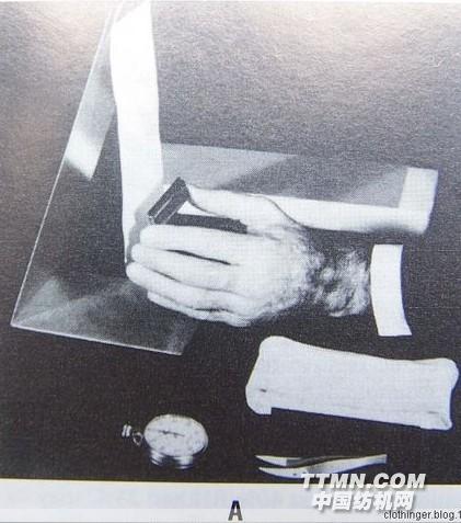 9. Procedure Clean the metal test plate before testing every different lot of fabric. To clean, swab with a facial tissue saturated with HH Solvent (wear protective gloves). Allow the plate to dry at least 5 min in the conditioning test chamber as a result of cleaning the metal test plate. If the No.4 finish on the surface of the test plate is changed noticeably due to use, replace the test plate with a new one. Handle the fabric test specimens and rubbing fabrics at only one marked corner to minimize transfer of impurities to the remainder of the fabric. Adhere double-faced adhesive tape around all four 20 mm thick sides of the rubbing block. Completely discharge the rubbing fabric on both sides with the radioactive bar (Caution, see 4.2). Place a 50&tim