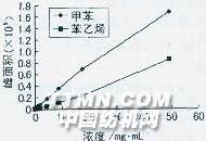 圖6苯乙烯、甲苯校準曲線 (5)回收率和精密度