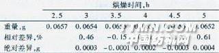 絕對差異=相應烘燥時間樣品的重量一前一烘燥時間樣品的重量 表2不同烘燥時間下試樣的相對差異和絕對差異