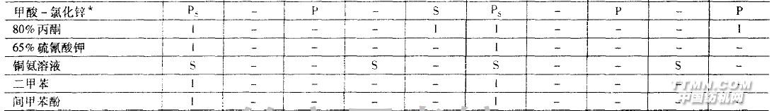 2.2 密度法定性鑒別因纖維加工工藝和生長(zhǎng)環(huán)境不同,纖維密度會(huì)有較大的差異,因而密度法測(cè)試精度無(wú)法達(dá)到要求,同時(shí)費(fèi)時(shí)費(fèi)力,因此不適合定性鑒別竹原纖維和亞麻纖維。2.3 溶解法定性鑒別纖維定量分析~一般嗣化學(xué)溶解法,定性鑒別也可
