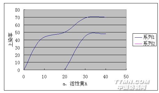 我們在工作中參考了大量的資料,根據針織物浸染的特點,選擇部分試驗方法作為評價活性染料配伍性的試驗方法。現以比較兩組活性染料組合為實際例子,介紹幾種評價活性染料配伍性的試驗方法。在本文試驗中,Ⅰ組為活性黃A,活性紅棕A及活性藍A三種染料組合;Ⅱ組為活性黃A,活性紅棕A和活性藍B三種染料組合。 下面采取五種測試方法進行試驗:第一,上染曲線和固色曲線法;第二,計算SERF值法;第三,分步浸染法;第四,分次取樣法;第五,改變染色條件法。