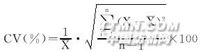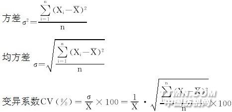 1--小于的各試驗值平均n1--小于值的試驗個數(shù)2.2 變異系數(shù) 變異系數(shù)是指均方差對平均數(shù)的百分比,而均方差是指各數(shù)據(jù)與平均值之差的平方的平均數(shù)之平方根。故變異系數(shù)又稱方差系數(shù)。